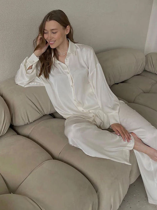 Reflet de Minuit | Pyjama Blanc Pour Femme En Satin