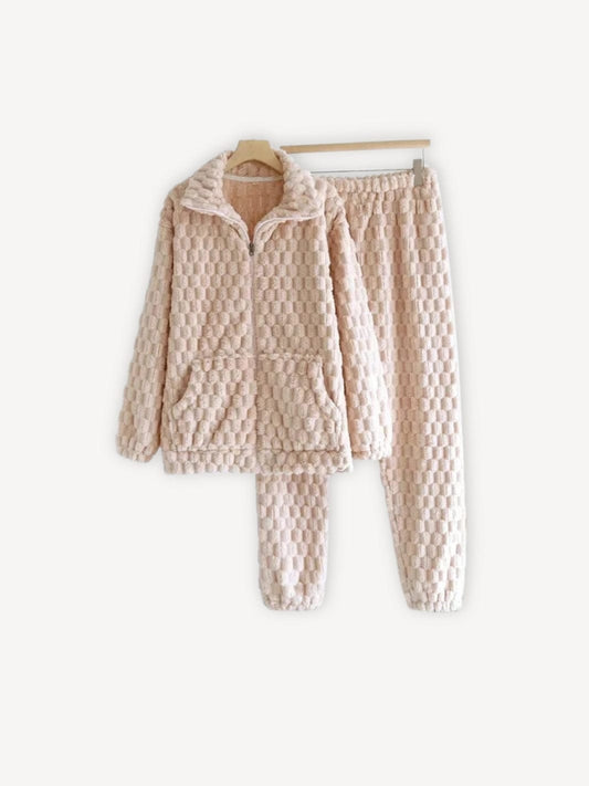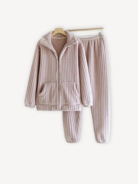 Nos ensembles pyjama femme chauds comprennent haut à manches longues et pantalon assorti, créant une harmonie parfaite pour vos nuits d'hiver. Chaque ensemble est pensé dans les moindres détails pour optimiser votre confort thermique.