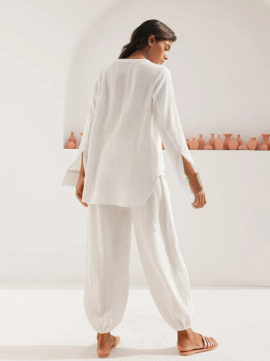 Orchidée de Nuit : Pyjama Blanc en Coton pour Femme