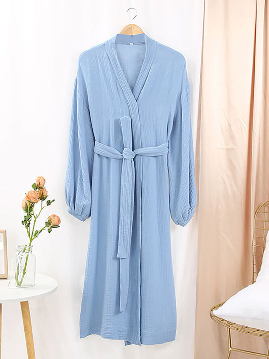 Robe de Chambre en Coton Chaleur Douce Bleu Ciel