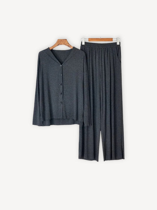 Pour les silhouettes plus larges aux hanches, nos pyjamas femme hiver à hauts ajustés et pantalons droits équilibrent harmonieusement la silhouette. Les matières fluides comme le modal subliment cette morphologie.