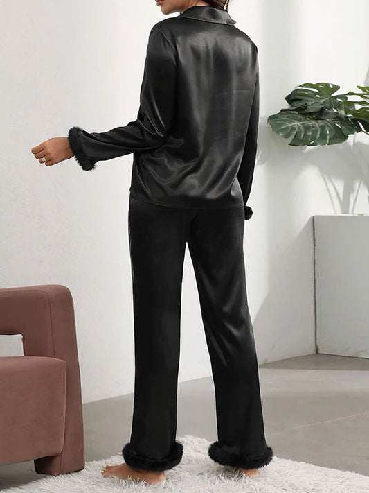 Pyjama en Satin pour Femme | Liseré Contrastant Noir