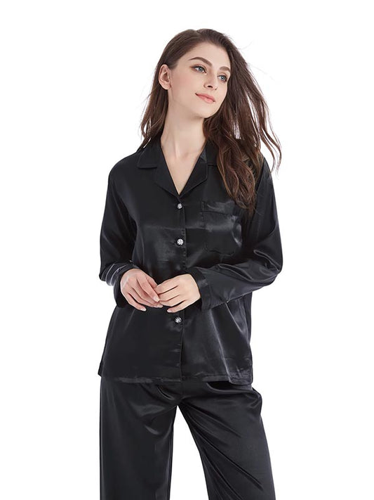 Pyjama En Satin Noir Pour Femme Caresse de Satin Signature