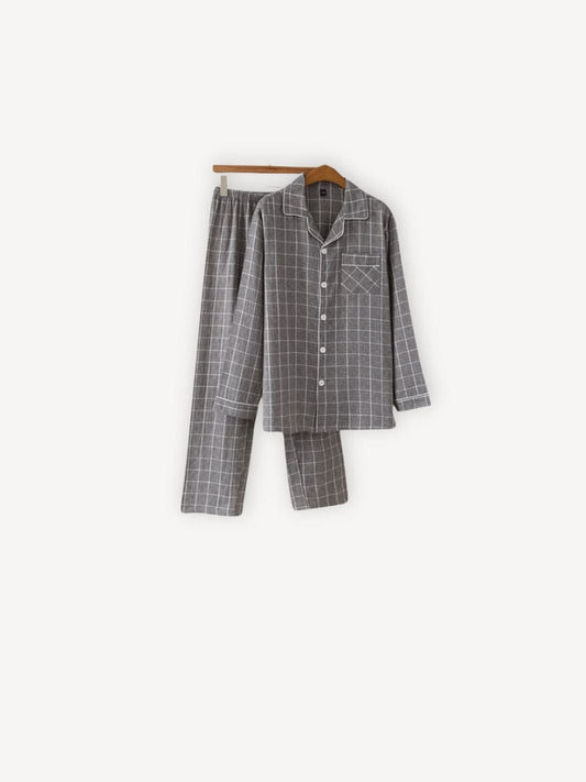 La veste à revers tailleur apporte une touche sophistiquée qui permet de porter ce pyjama flanelle aussi bien pour dormir que pour les moments de détente matinaux. Les poches plaquées et les finitions soignées en font une pièce aussi fonctionnelle qu'élégante.