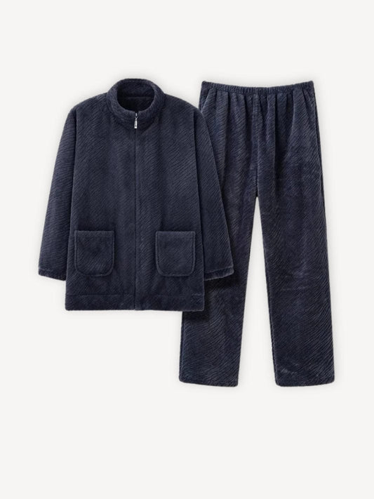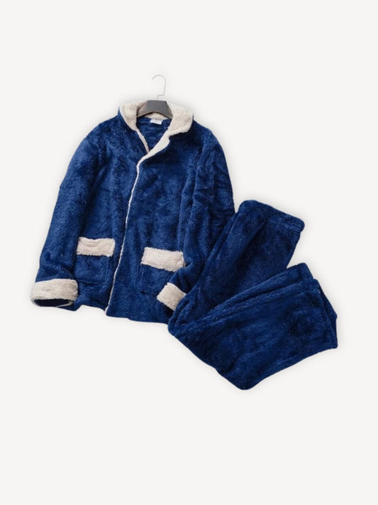 Chaque pyjama homme hiver classique est confectionné avec des finitions soignées : boutonnage nacre, poches poitrine fonctionnelles, ourlets renforcés et élastique taille ajustable pour un confort personnalisé.