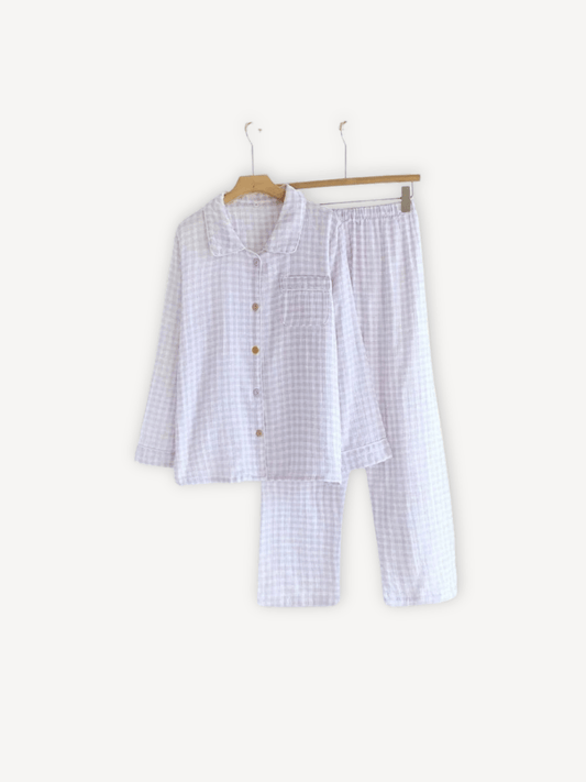 Notre ensemble pyjama rose poudré évoque la douceur d'un nuage matinal. Cette teinte délicate, symbole de tendresse et de sérénité, transforme chaque soirée en moment de pure détente. Le rose poudré s'harmonise parfaitement avec tous les teints, sublimant naturellement la beauté féminine.