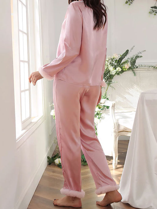 Composé d'une chemise boutonnée et d'un pantalon assorti, cet ensemble pyjama rose privilégie la liberté de mouvement tout en conservant une silhouette structurée et élégante. Les détails raffinés en dentelle apportent une touche romantique subtile.