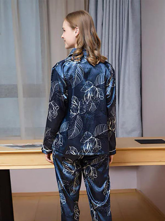 Pyjama Bleu Marine Pour Femme En Satin Rêverie Nocturne Signature