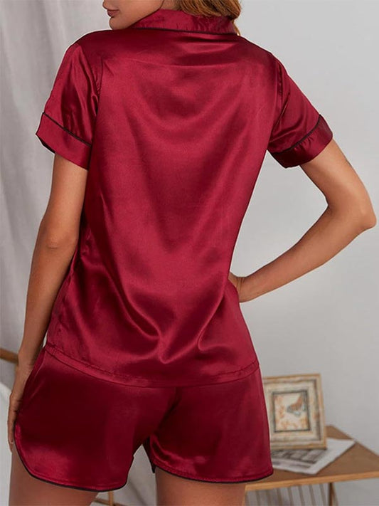 Pyjama en Satin Débardeur et Short pour Femme Rouge Satinique