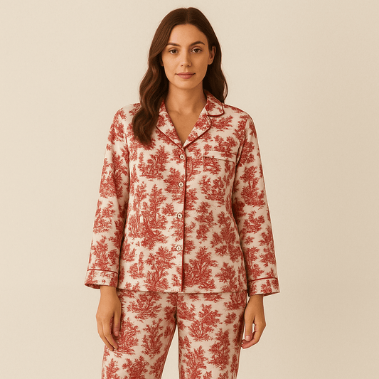 Nos pyjamas satin femme sont confectionnés dans des ateliers européens selon des standards de qualité irréprochables. Le satin utilisé, d'une densité de 120 fils/cm², offre cette douceur incomparable qui caresse la peau et procure une sensation de bien-être immédiat. Cette matière noble, réputée pour ses propriétés thermorégulatrices, s'adapte naturellement à votre température corporelle, garantissant un confort optimal en toutes saisons.